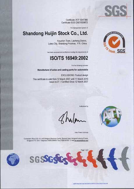 "公司获取ISO/TS 16949:2002质量体系证书"