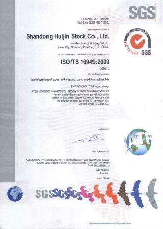 公司取得ISO/TS16949:2009版证书